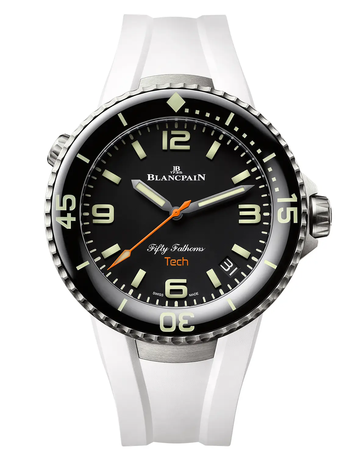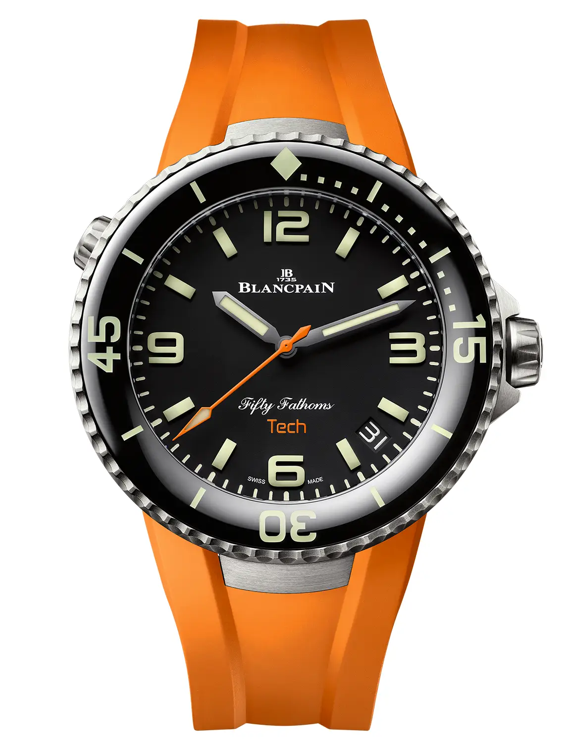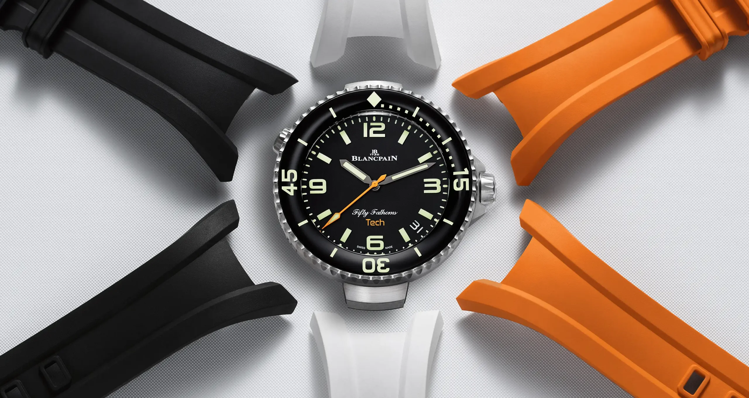 La versatilidad y funcionalidad, dos atributos que aprecian los hombres prácticos y que gustan de un diseño con carácter en su muñeca. Blancpain presenta el reloj Fifty Fathoms Tech de 45 mm con un nuevo sistema de correas intercambiables en negro clásico, blanco o naranja vivo. El mejor pretexto para vivir al máximo este verano.