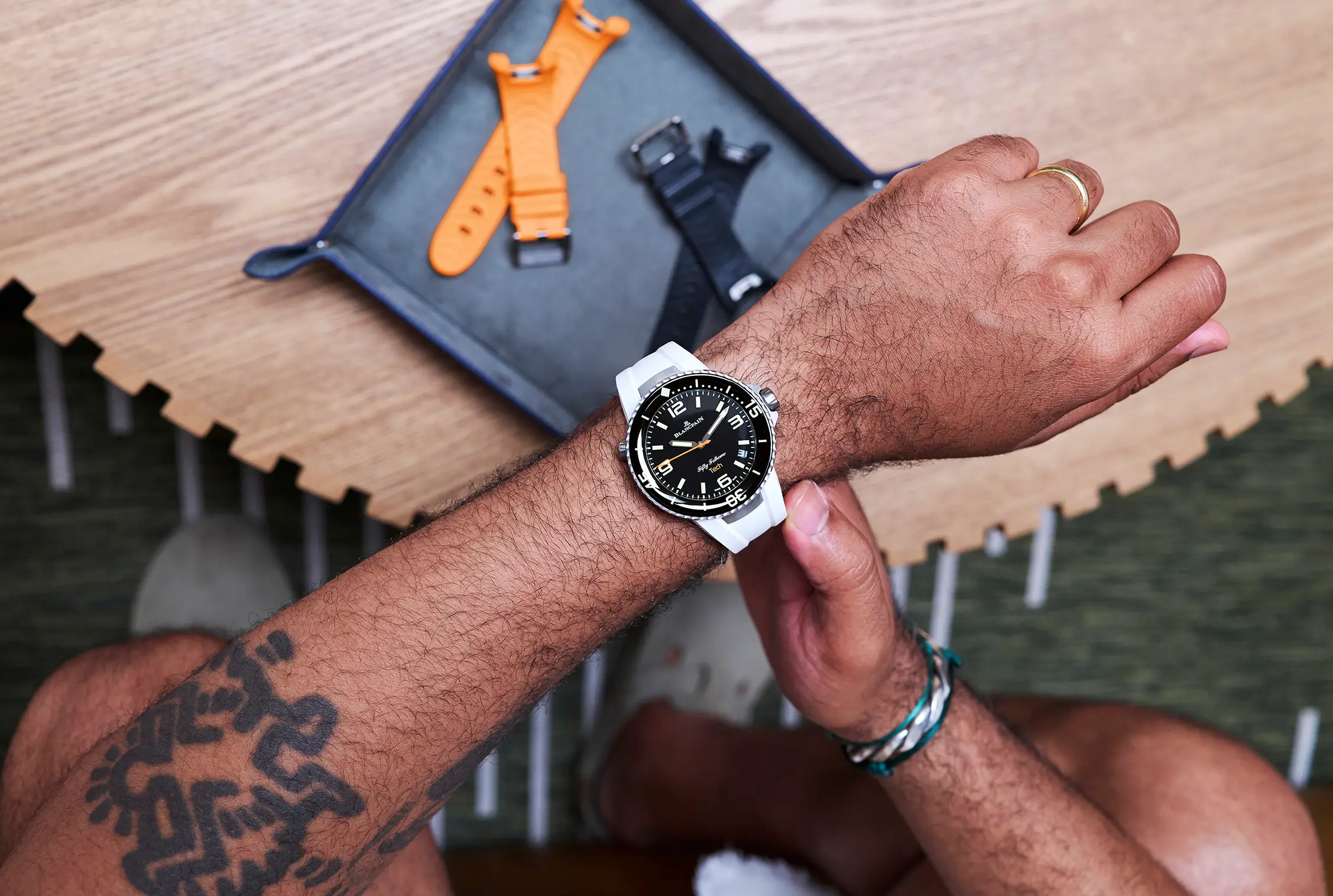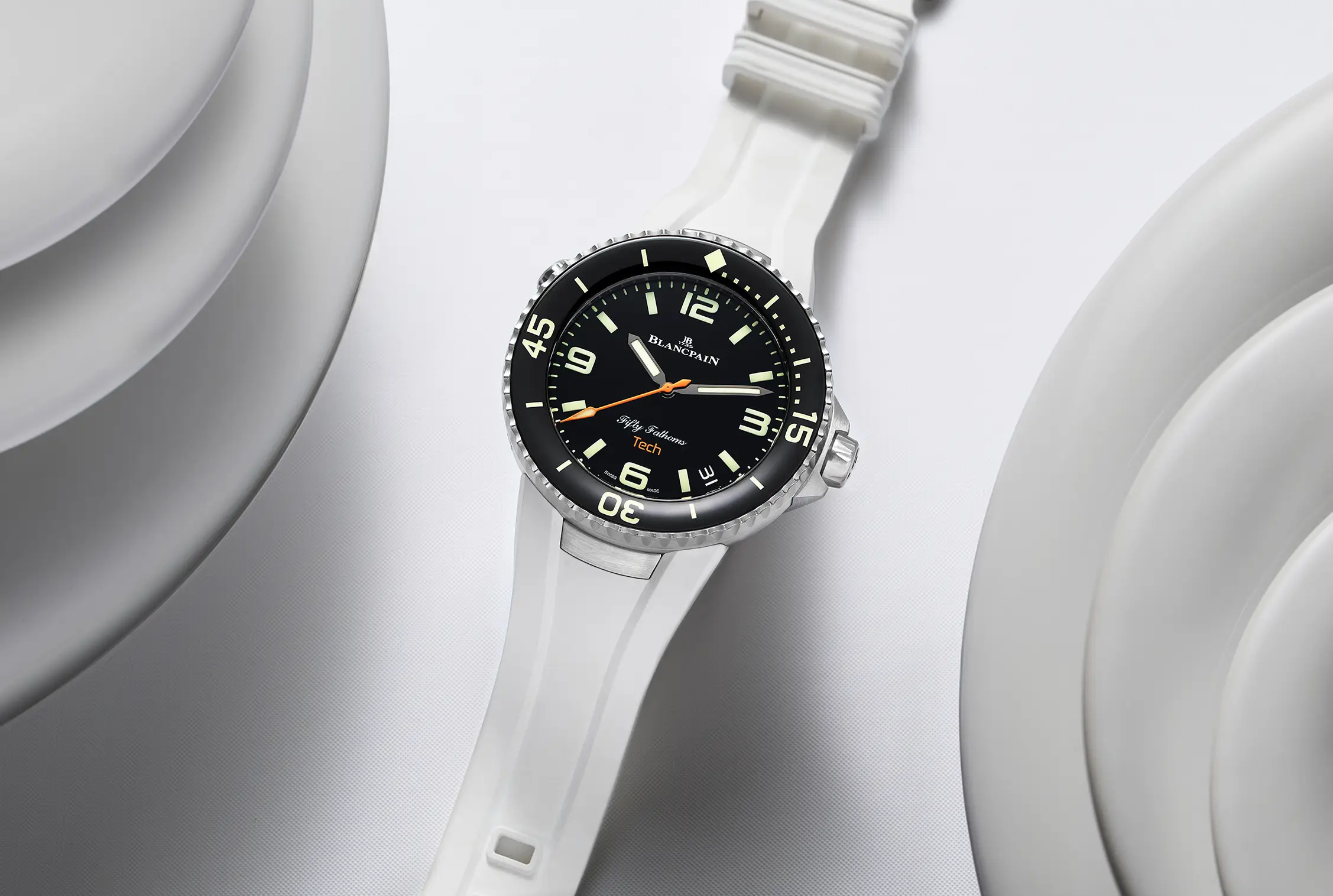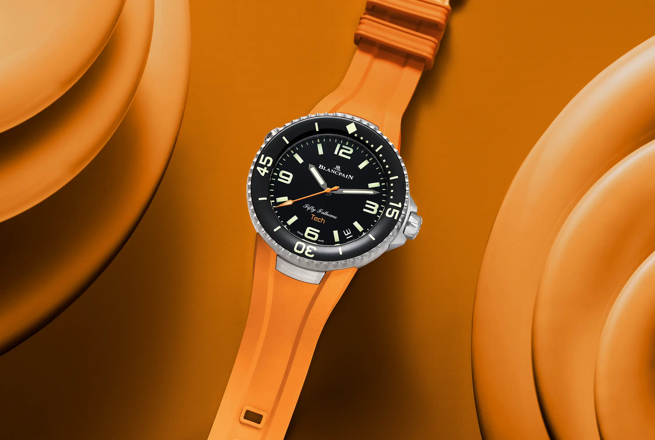 La versatilidad y funcionalidad, dos atributos que aprecian los hombres prácticos y que gustan de un diseño con carácter en su muñeca. Blancpain presenta el reloj Fifty Fathoms Tech de 45 mm con un nuevo sistema de correas intercambiables en negro clásico, blanco o naranja vivo. El mejor pretexto para vivir al máximo este verano.