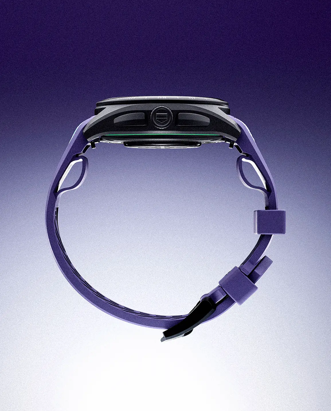 Se presenta con una caja de 40 mm fabricada con titanio de grado 2 con revestimiento DLC negro. Ligero pero robusto, está diseñado para soportar el entrenamiento diario sin dejar de ser cómodo en la muñeca.