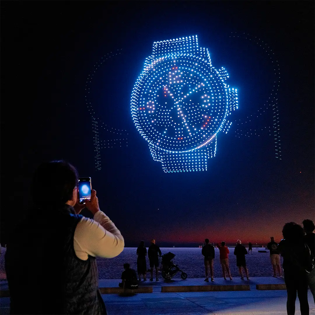 Veinticuatro horas antes del inicio oficial de la temporada, Los Ángeles se convirtió en la capital del tiempo deportivo. Los drones formaron textos, relojes, figuras icónicas de la NBA y hasta el contorno del nuevo Tissot Shot Clock. Mientras la multitud levantaba sus teléfonos para grabar, cada segundo del espectáculo reforzaba la idea central: cuando el tiempo es emocionante, importa más.